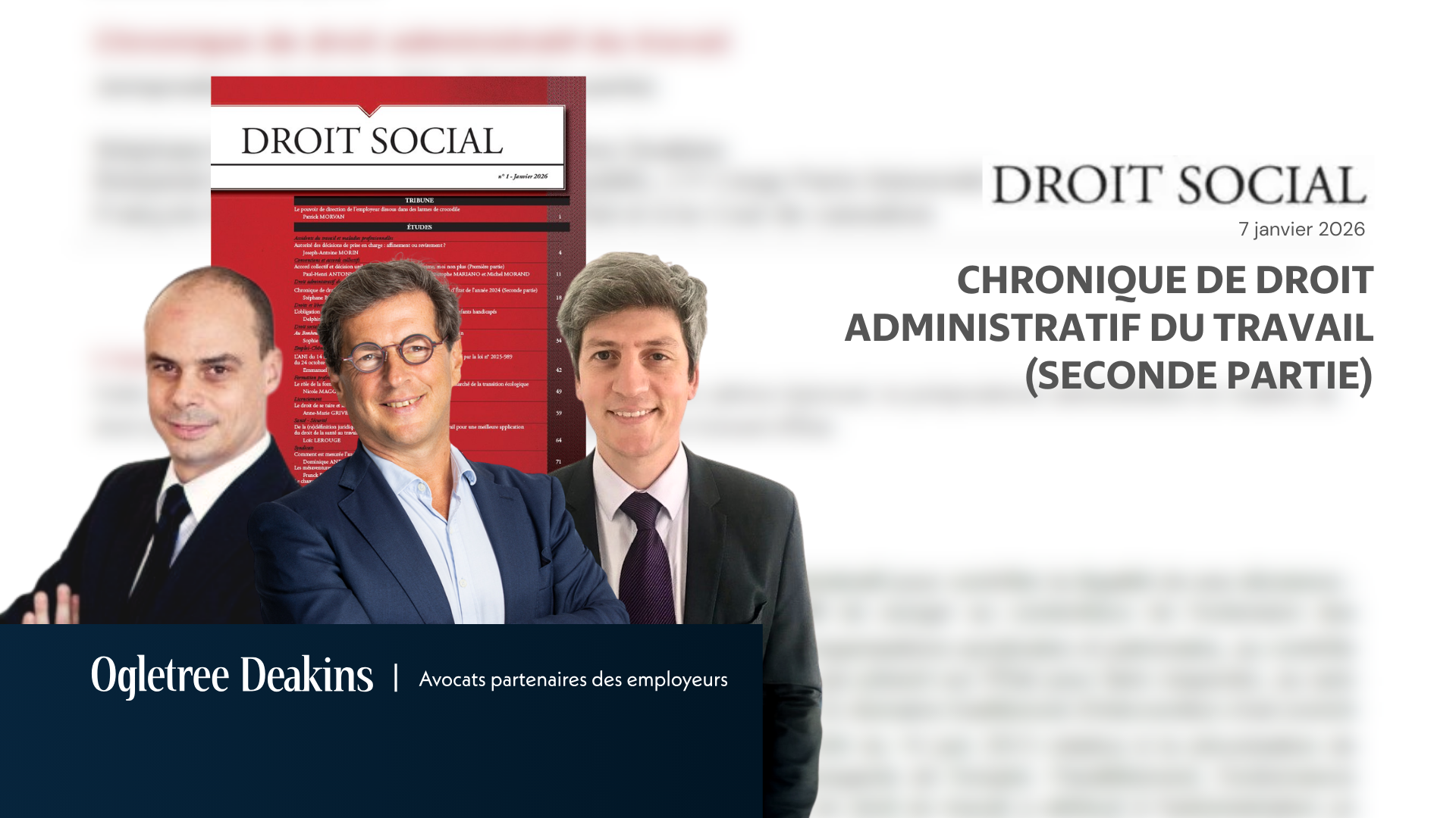 12 janvier 2026 ARTICLE | Revue Droit Social (Dalloz) par Stéphane Bloch, François Pinatel et Benjamin Defoort – Jurisprudence administrative en droit du travail (Seconde partie) En savoir plus
