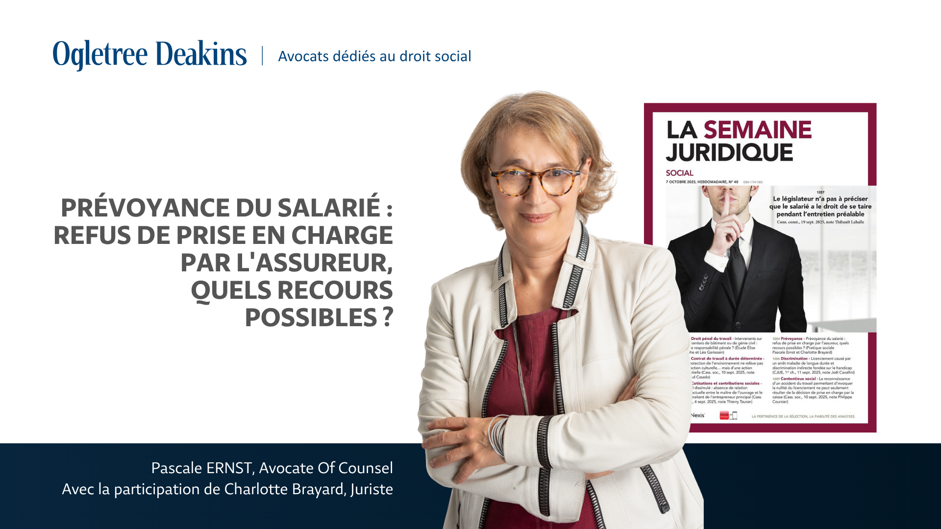 Pascale Ernst est avocate Of Counsel en droit de la protection sociale et de la retraite au sein du cabinet Ogletree Deakins depuis 2021.